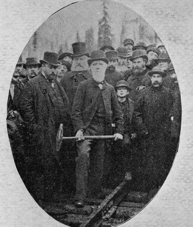 He made his way back to Farewell, which at that time was a construction camp for the Canadian Pacific Railway, and he was able to find work carrying the mail and other goods between Farewell and Eagle Pass Landing. It was a profitable business but as the railway neared completion, the workers slowly drifted away and the construction camps became deserted ghost towns. With business all but gone, Eddy decided to stay in the area to witness the driving of the Last Spike. On 7 November 1885, he boarded the last construction train for Craigellachie and having made his way through the crowd of construction workers and dignitaries, Edward Mallandaine stood behind Donald Smith (later Lord Strathcona) and became one of the central figures in what was to become one of Canada’s most recognized photographs, the Driving of the Last Spike. In later years, Edward recalled ‘as soon as the ceremony was completed, the spike was pulled out and cut into bits and handed out as souvenirs.’