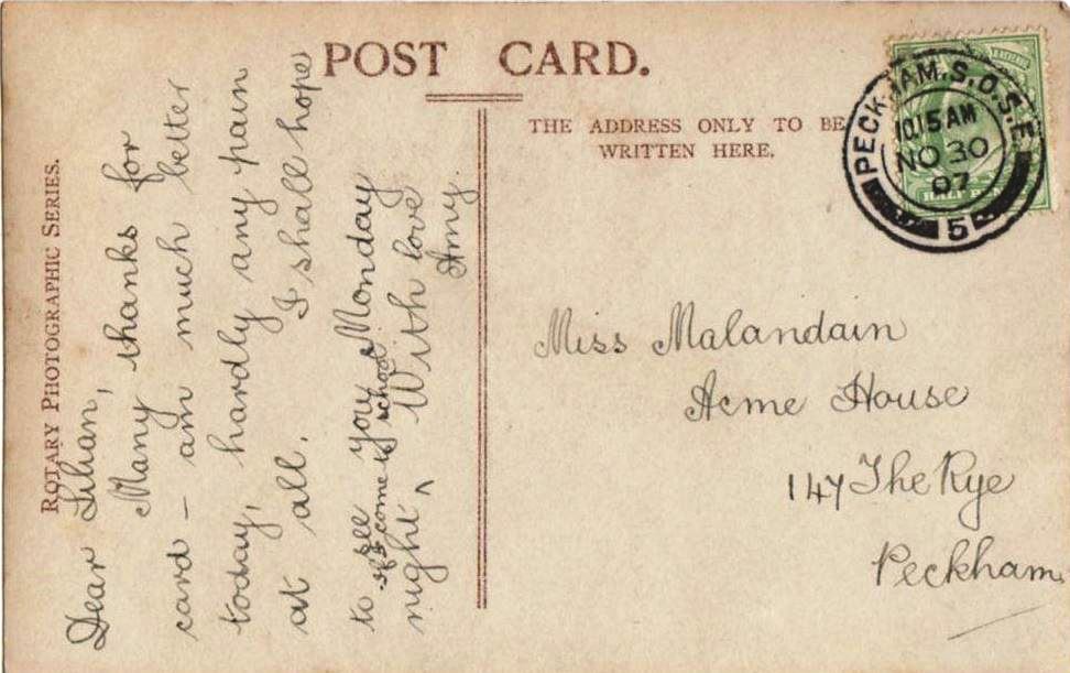 Jack Lemay was born on 14 February 1902 and was thereafter known as ‘Valentine’. Mabel Rose was born on 17 October 1903 in Lewisham and Hilda Ada on 2 December 1904. They moved to a larger house to accomodate their growing family and settled at 145 Peckham Rye which was across the street from Peckham Common between Nunhead and Dulwich. Two years later, they moved next door to number 147, known as Acme House, where they lived for the next ten years.