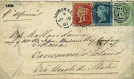 Caroline left the family home in Dinan, France when she was 18 years old and first took a situation in Angers before travelling back to England to find work as a teacher and governess. She appears in the 1851 Census at 19 Camden Place in Walcot, now a suburb of Bath, working as a French teacher at a small girls school. She left England in 1860 and sailed from Gravesend Dock to Victoria in what was then the colony of Vancouver Island where her brother Edward lived. Her arrival was recorded in The Colonist newspaper on 26 January 1861: Passengers on Princess Royal from London 122 days Captain Trevitt: Miss Mallandaine. Despite the move, Caroline remained in contact with family in England as at least one envelope cover found in an online stamp auction confirms.