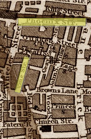 Nineteen year old Thomas appears in the census at 4 Vine Place in the parish of Christ Church where he is listed as a servant and Glass Scopler or Cutter in the household of Alexander Bass and his wife Ann. Lockie’s Topography of London, published in 1810, placed Vine Place at the north end of Vine Street near Little Pearl Street which was just south of Quaker and Phoenix Streets where Sophia lived with her daughters. Phoenix Street disappeared when the East London Railway, now the East London Line, was built in 1869 but Quaker Street remains today although many of the buildings from the Mallindine’s time have been demolished.