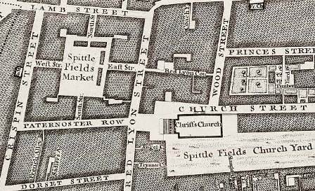 After their wedding, James and Margaret moved to Paternoster Row and James continued to work as a Tinplate Worker. Paternoster Row, now known as Brushfield Street, ran parallel to the Spitalfields Market and ended at Christ Church on what is today Commercial Road.