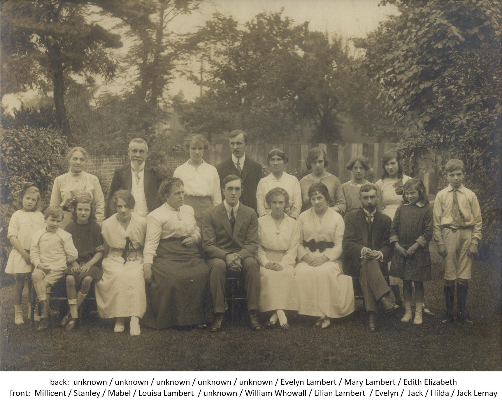 Millicent Annie was born in 1906 and Stanley George in 1909. In 1911, there were 12 members of the family living in the ten room house on Peckham Rye — John, Evelyn and their seven children as well as Evelyn’s three eldest daughters, Lilian, Evelyn and Louisa who was known as Lena. Evelyn’s youngest daughter, Mary, was away at boarding school in Oxfordshire. Four years later, they celebrated a double wedding as her two eldest daughters married at St Antholin in Nunhead in the same week; Evelyn married William Ingram on 7 August and Lilian married William Whowall two days later.