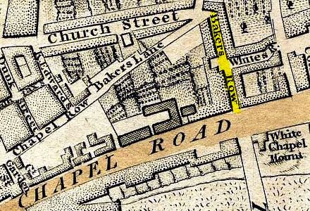 William married Frances Kelsee at St Dunstan in Stepney on 23 September 1783 with James Sinclair and Robert Vaughan acting as witnesses. The entry does not list William’s occupation but it confirms both he and Frances lived in the parish, however, they later moved to Baker’s Row in Whitechapel and were living there when their first child, Ann, was born. Ann was baptised on 14 April 1784 and the nearby church of St Mary Whitechapel but her date of birth was not included in the register.