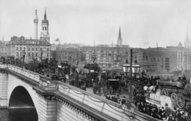 King William Street runs through the City of London to the banks of the Thames where it turns into the London Bridge. It was a busy thoroughfare filled with crowds and carriages crossing the bridge and even gained a mention in T.S. Eliot’s poem The Wasteland: